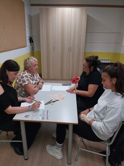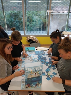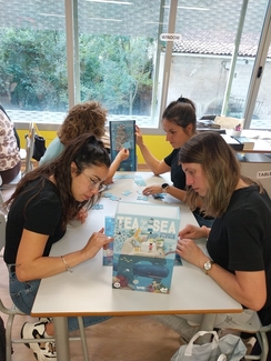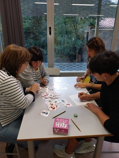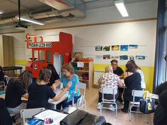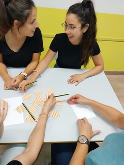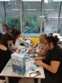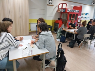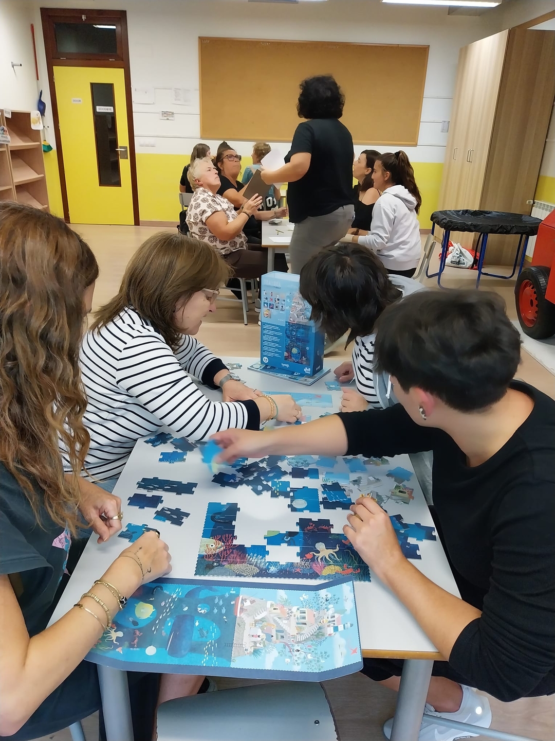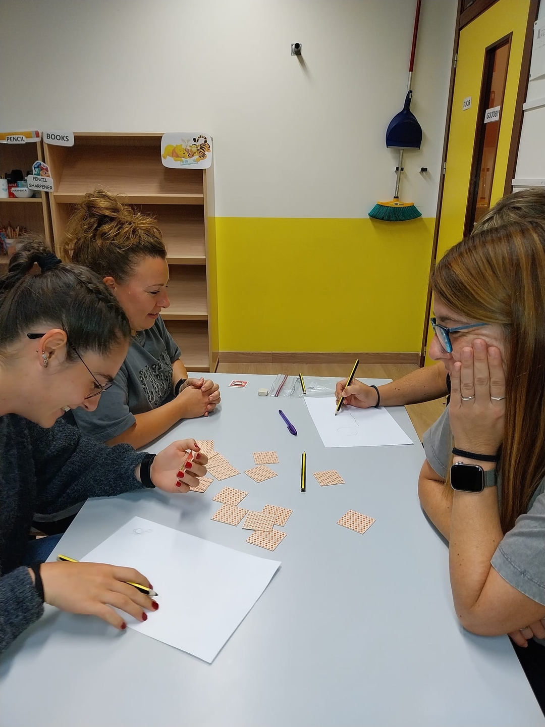 Irudi hauetan, Haur Hezkuntzako irakasleak ikusiko dituzue jolasak probatzen, ikastaro txiki batean. Behin jolasen funtzionamendua barneratuta, gure txikiekin lanean hasteko prest egongo dira!