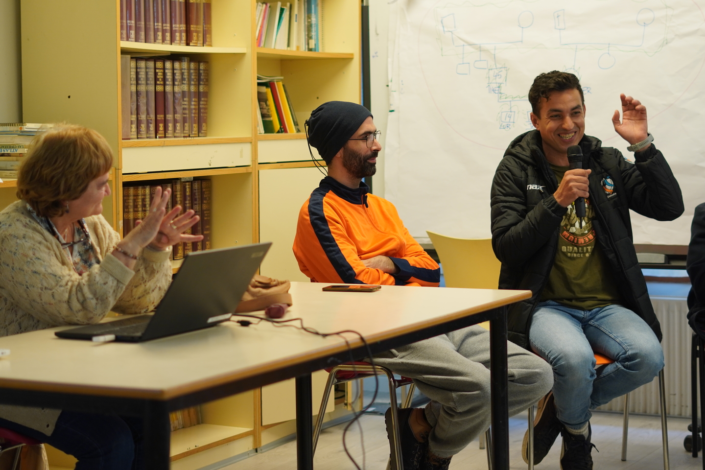 Ikasleek aukera paregabea izan dute Harrera Sareak egiten duen lana gertutik ezagutzeko, eta baita Saiden eta Badr-en kontakizunak entzuteko ere: nola iritsi ziren Euskal Herrira, gaur egun zertan ari diren, eta etorkizunerako dituzten amets eta helburuak.
