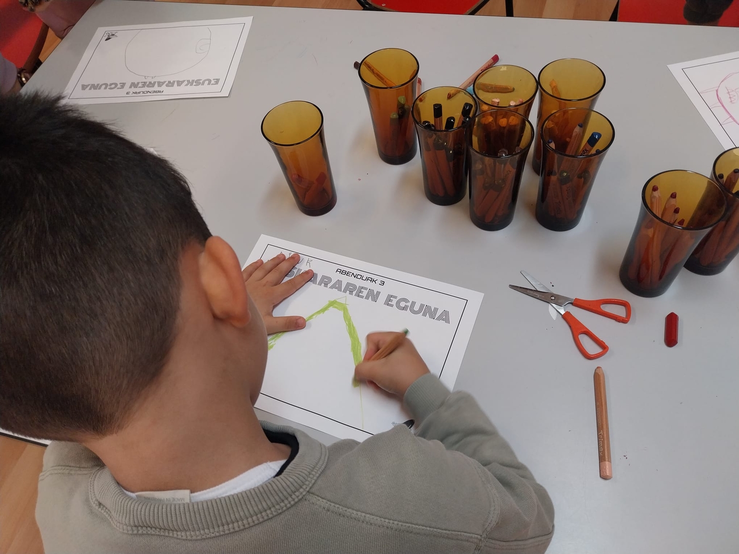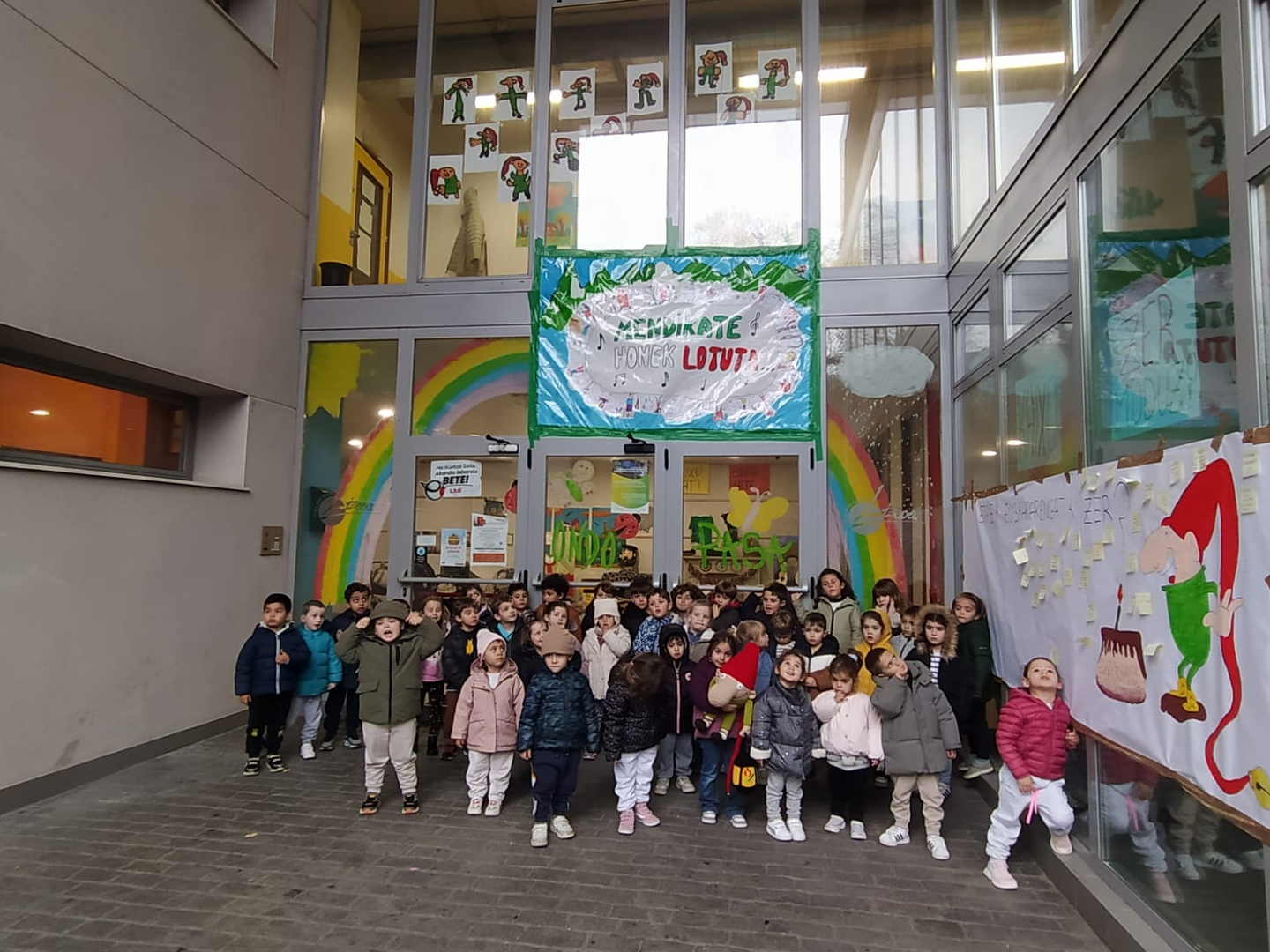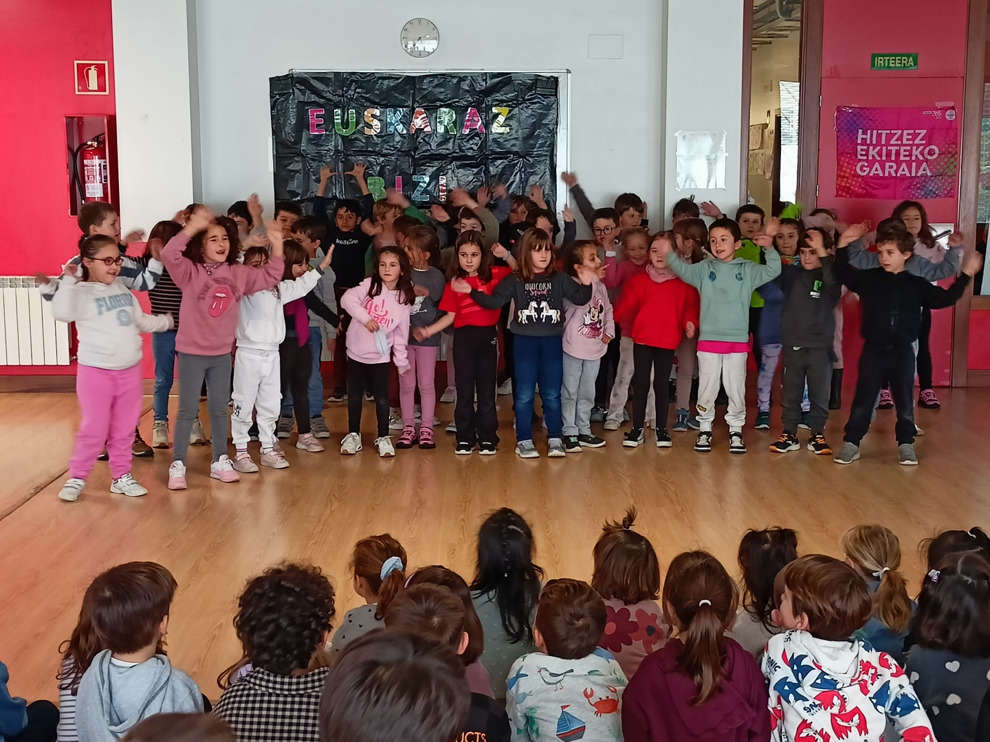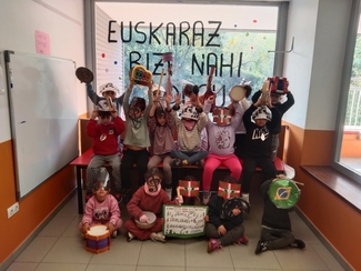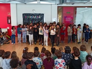 Por su parte, las y los estudiantes del primer ciclo de Educación Primaria han organizado una celebración llena de color: cantando y bailando, en un ambiente festivo a favor del euskera.