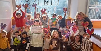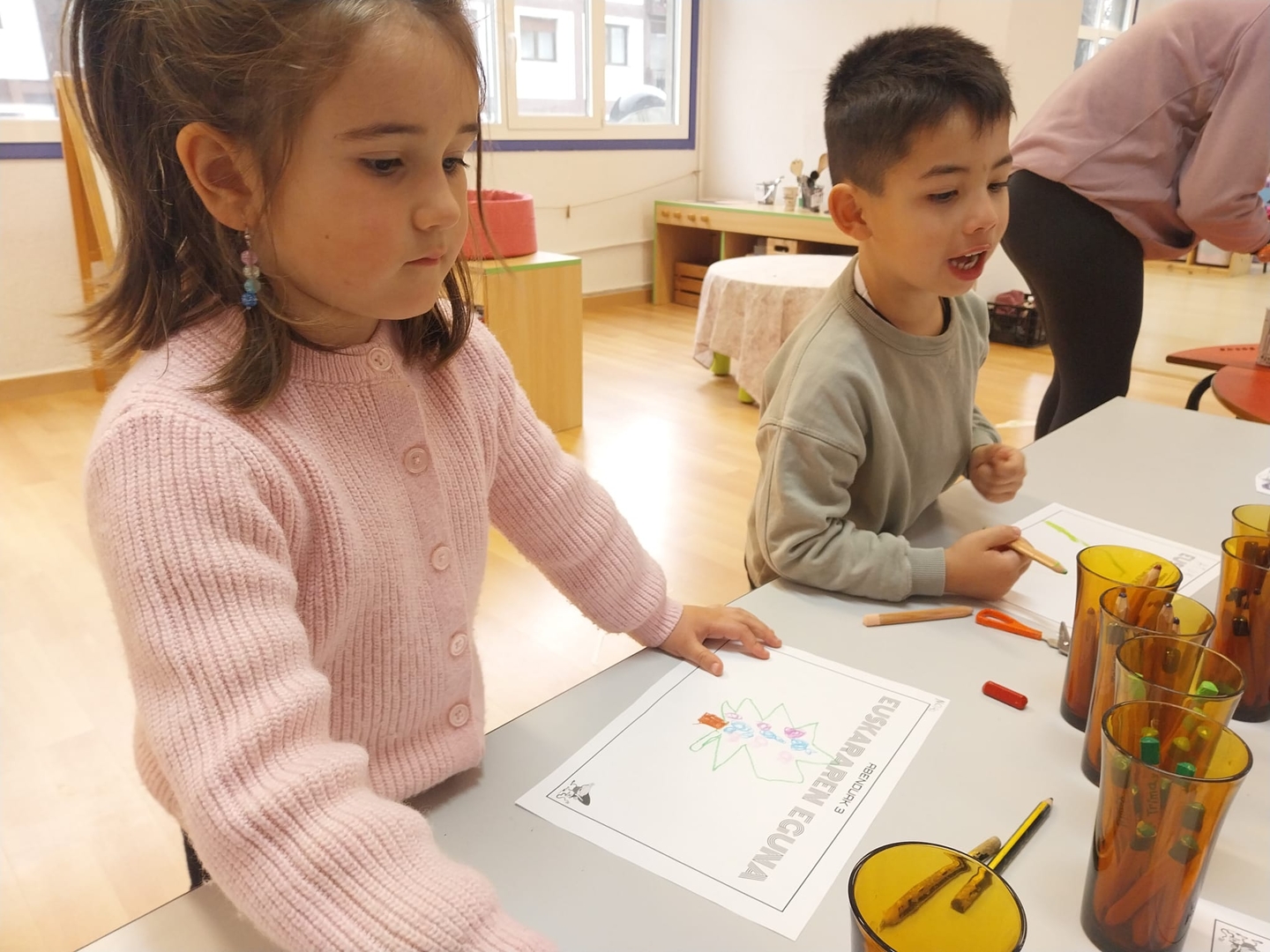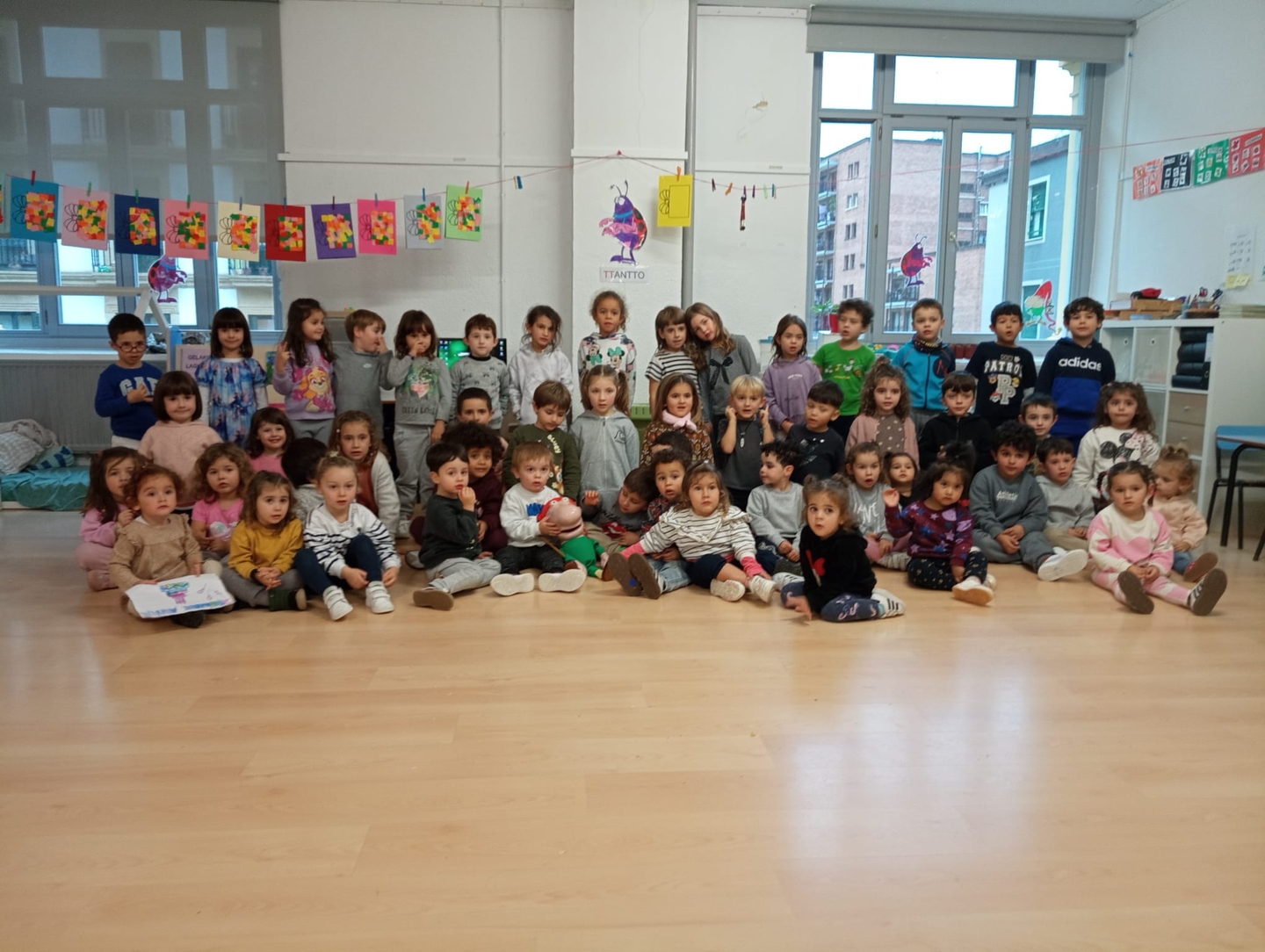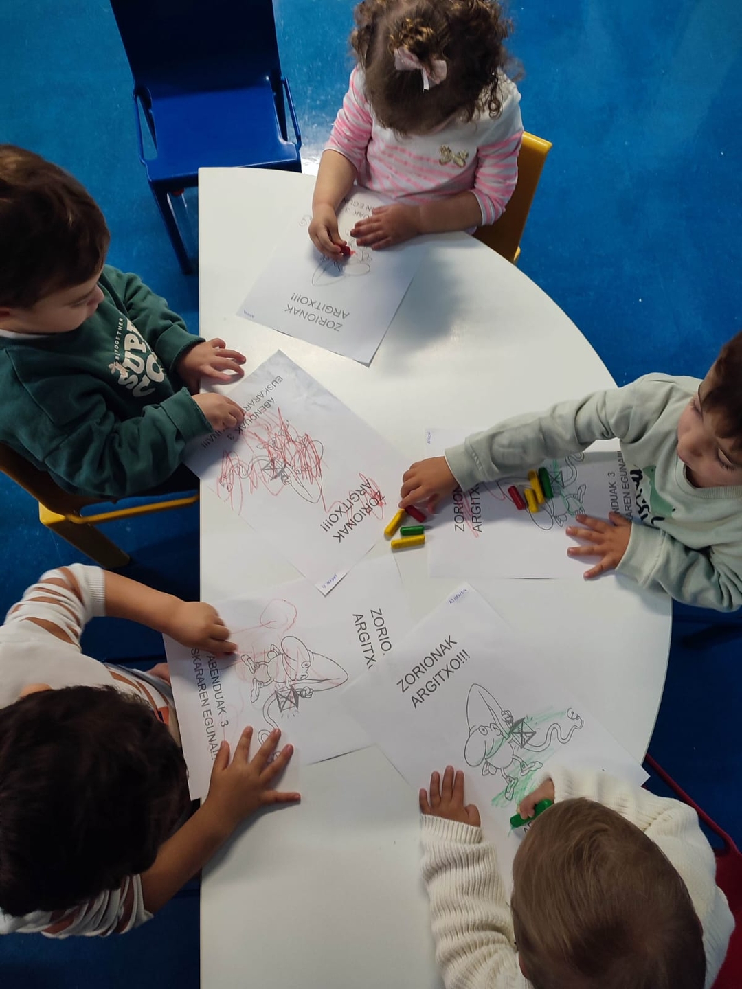 Por su parte, las y los estudiantes del primer ciclo de Educación Primaria han organizado una celebración llena de color: cantando y bailando, en un ambiente festivo a favor del euskera.