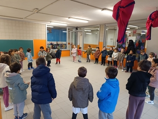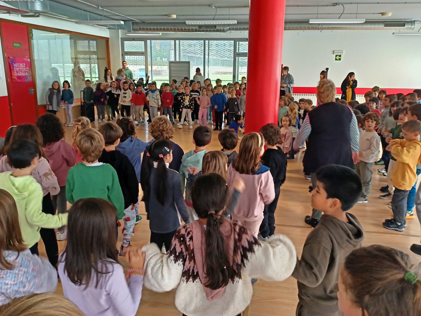 Lehen Hezkuntzako lehen ziklokoek, bere aldetik, ospakizun koloretsua antolatu dute: kantuan eta dantzan arituz, euskararen aldeko jai giroan.