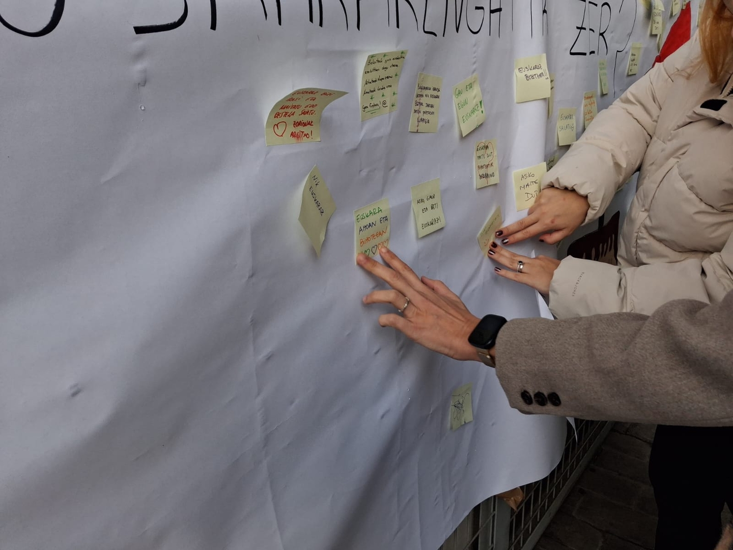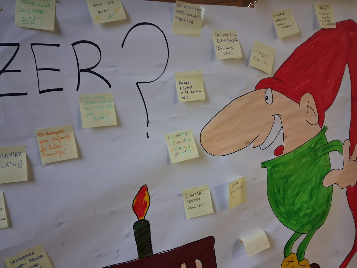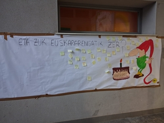 Además, bien temprano por la mañana, en la Ikastola de Lezo, el Grupo de Madres y Padres Errota ha llevado a cabo una iniciativa especial. Han ofrecido desayuno a las familias en la entrada y, a cambio, les han lanzado esta pregunta: “Y tú, ¿qué haces por el euskera?” Las respuestas se han recogido en un gran póster, dejando en evidencia la fuerza y el compromiso de la comunidad.