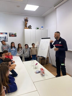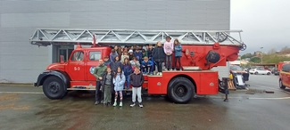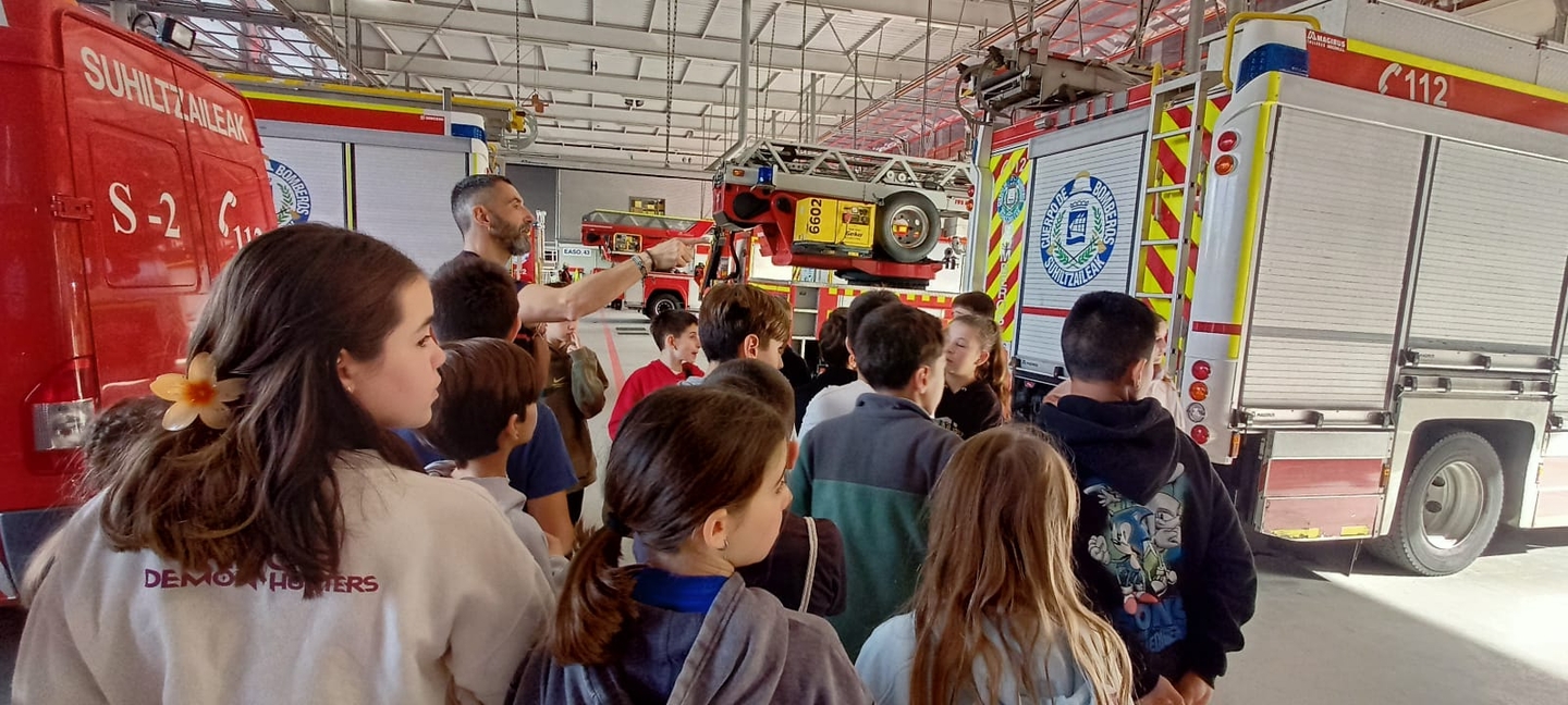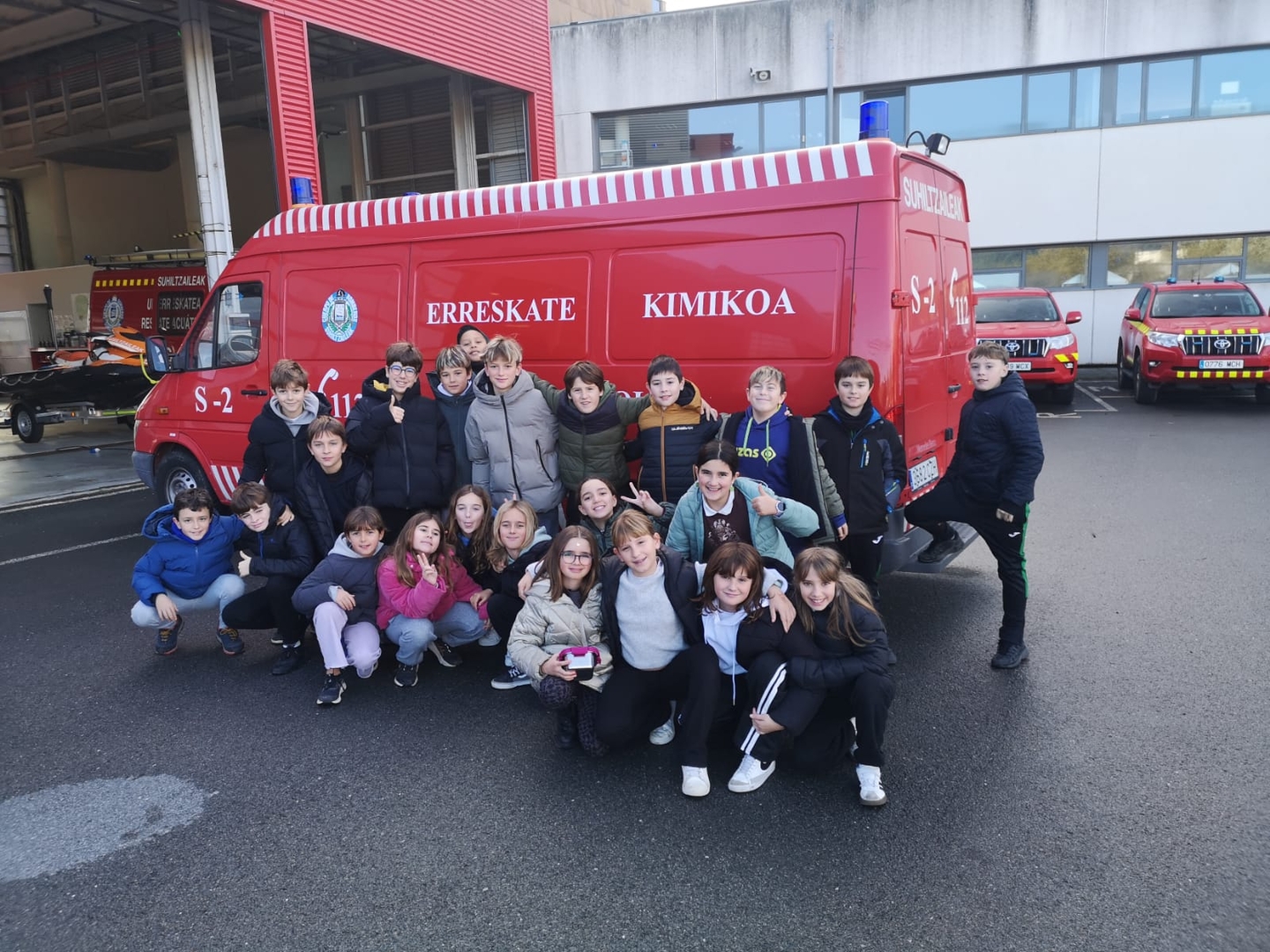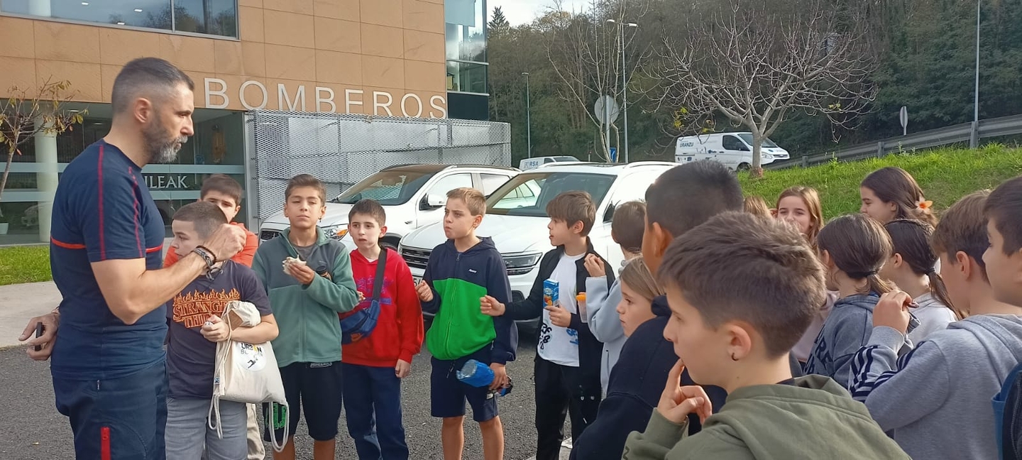 Lehen Hezkuntzako bosgarren mailako lau gelak, banan-banan, Donostiako suhiltzaileen egoitzan izan dira bisitan.