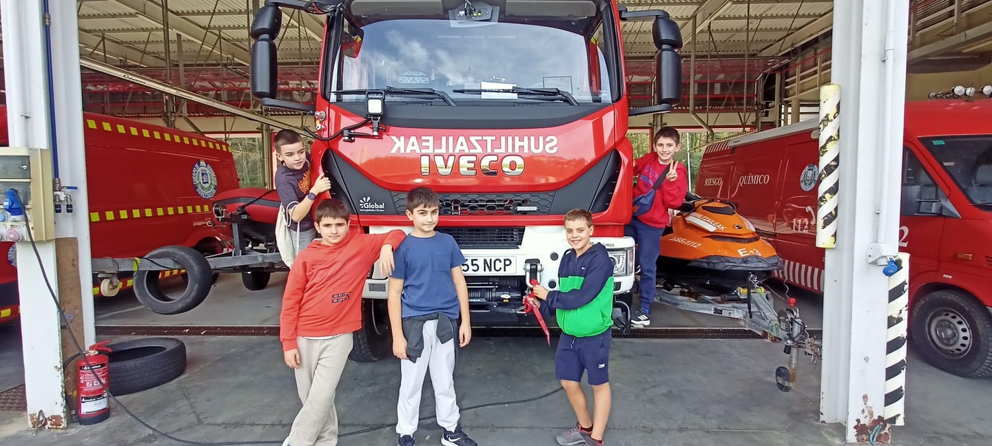 Suhiltzaileek sute baten aurrean nola jokatu behar den erakutsi digute, euren egunerokotasuna gertutik ezagutzeko aukera izan dugu, eta noski… kamioi, tresna eta ekipamendu artean ibiltzeko aukera ez dugu alferrik galdu!