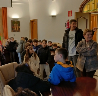 Udaletxean Mikel Arruti alkatearekin eta Miren Ormazabal zinegotziarekin elkartzeko aukera izan dute. Pleno aretoan zeudela, Elias Salaberria margolari ospetsuaren koadro bat ikusi dute, eta balkoira ere atera dira herria beste ikuspegi batetik ezagutzeko.